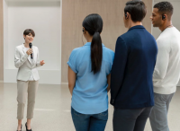Mit Unite können Sie einen Dialog mit Ihren Besuchern führen. Dabei können Sie selbst festlegen, ob nur Sie die Fragen hören oder die ganze Gruppe. In einer beliebig großen Gruppe können bis zu drei Personen gleichzeitig sprechen.
