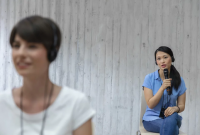 Mit Unite können Sie einen Dialog mit Ihren Besuchern führen. Dabei können Sie selbst festlegen, ob nur Sie die Fragen hören oder die ganze Gruppe. In einer beliebig großen Gruppe können bis zu drei Personen gleichzeitig sprechen.