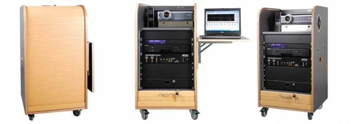 Eine hervorragende Lösung für den mobilen Einsatz: Das ITEC Multi-Media-Mobil. Die gesamte Seminartechnik in einem kompakten Möbel untergebracht. Natürlich auch mit zentraler Funkfernbedienung.